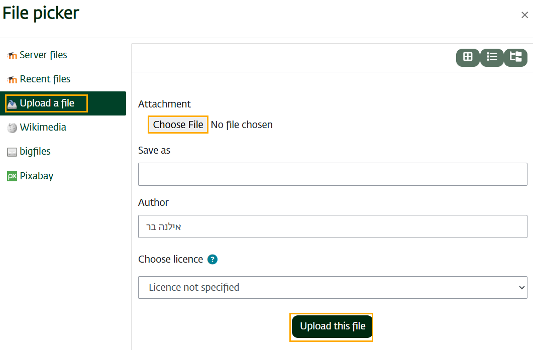 b. Click on "Choose File" and navigate to the location of your file on your computer