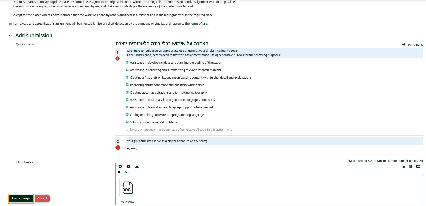.Once you've added your content or file, click "Save changes" to complete the submission