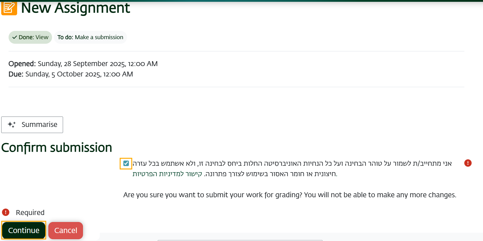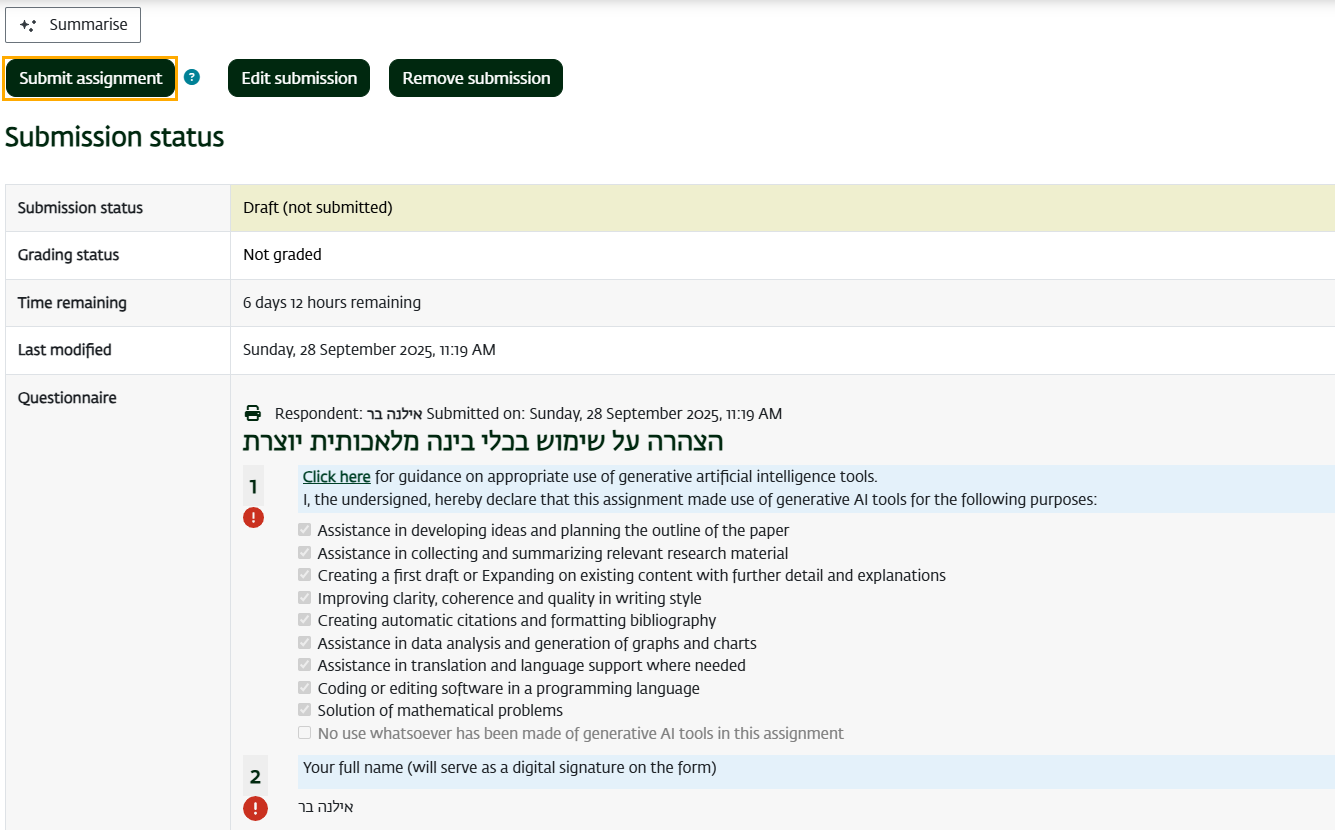 :If student consent is required for the submission statement, click the "Submit assignment" button