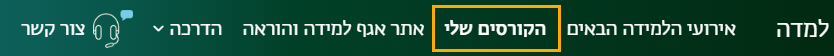 1. יש להיכנס לאתר הקורס של הלומדה דרך עמוד "הקורסים שלי" בתפריט העליון: