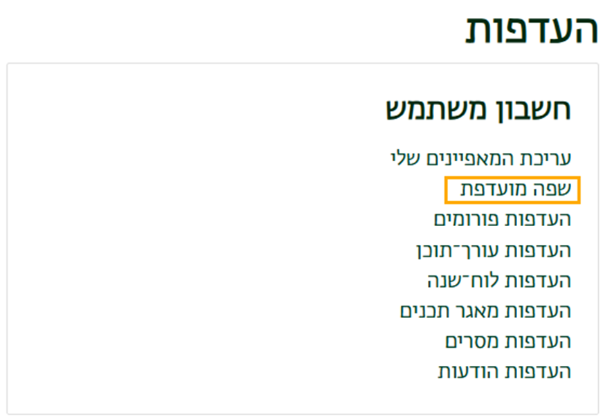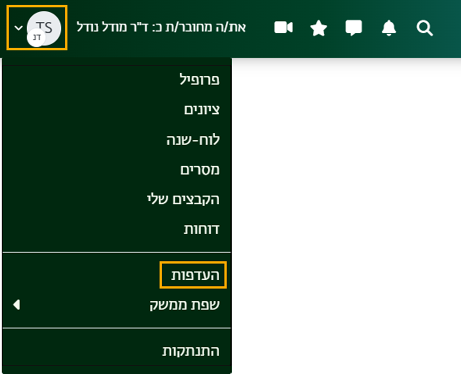 1. נלחץ על השם שלנו בפינה השמאלית העליונה ולאחר מכן נלחץ על "העדפות".