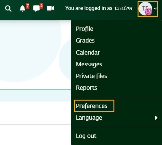 "a. Access your account by clicking on your name at the top right corner of the main page, then choose "Preferences